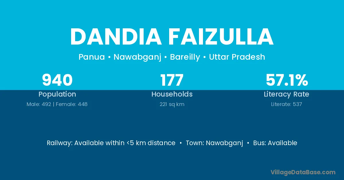 Dandia Faizulla village has a total population of 940 people, of which 492 are males and 448 are females.