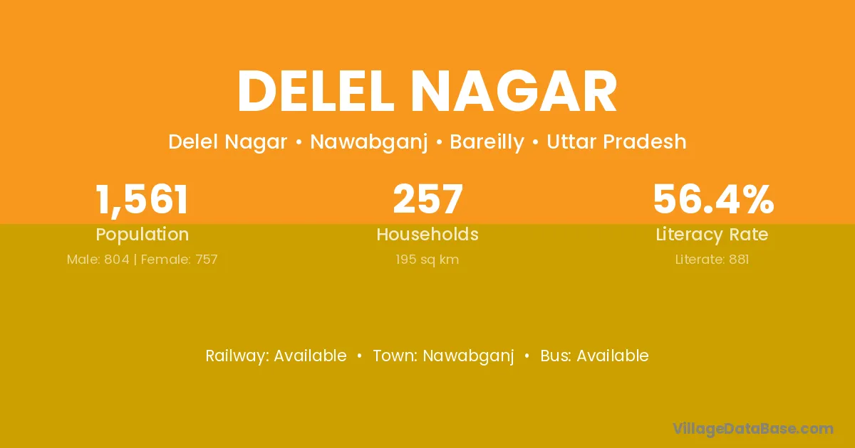 Delel Nagar village has a total population of 1,561 people, of which 804 are males and 757 are females.