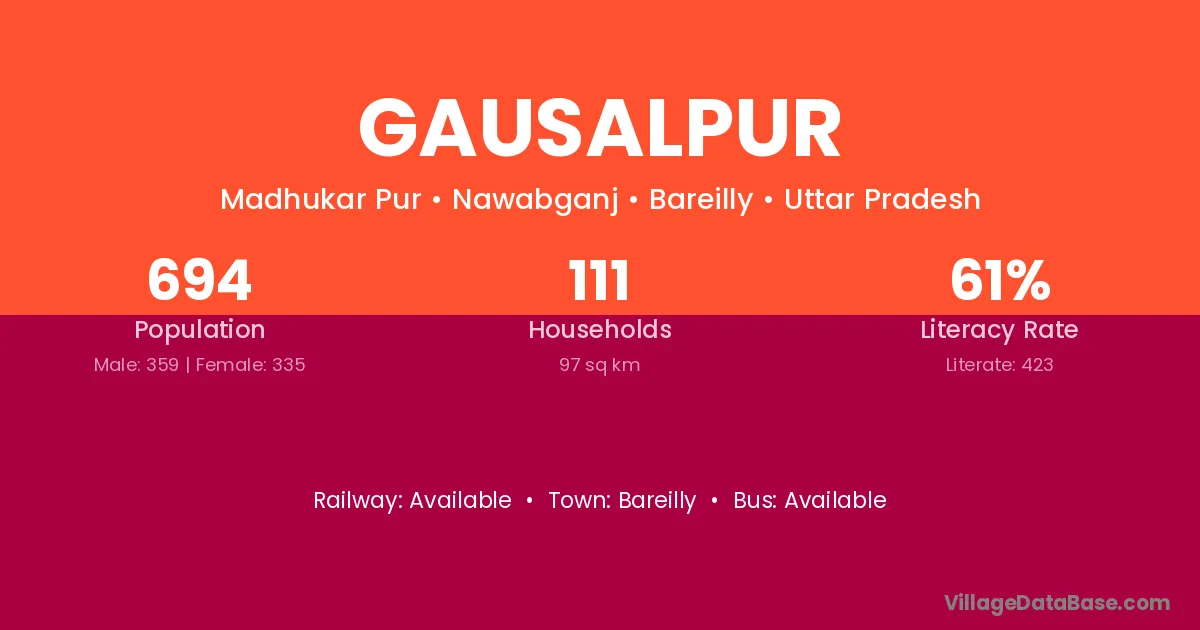 Bareilly is the nearest town to Gausalpur village for major economic activities