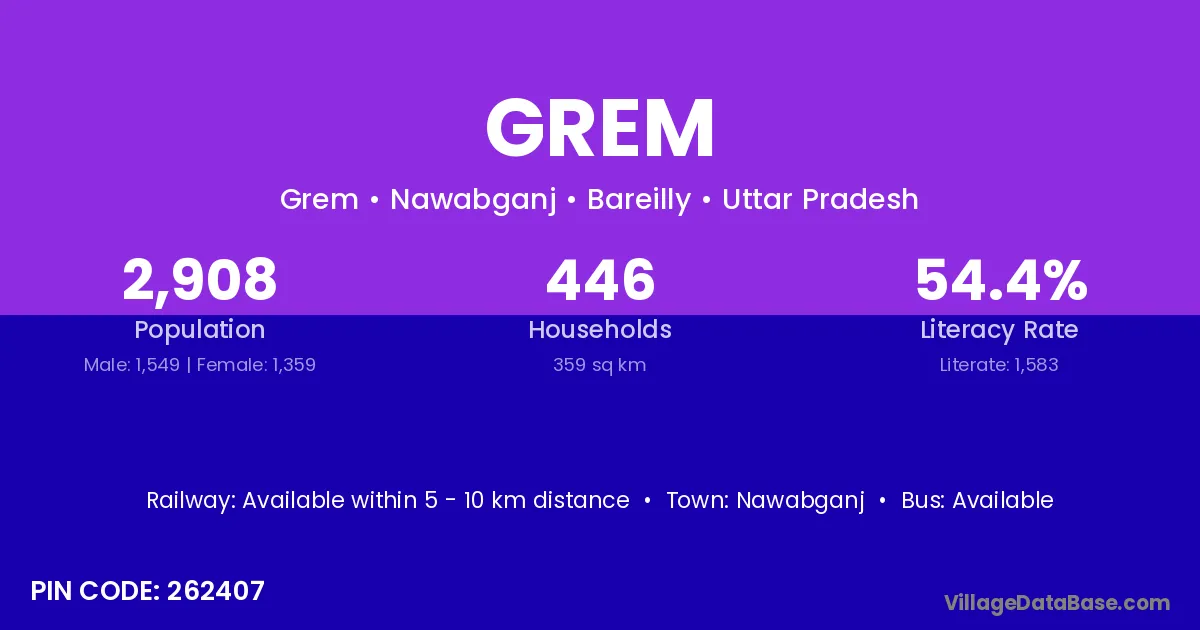 Grem village is located in the Nawabganj Tehsil of the Bareilly district in Uttar Pradesh .