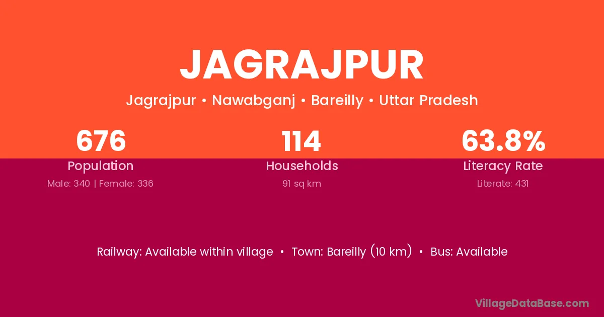 Bareilly (10 km) is the nearest town to Jagrajpur village for major economic activities and is located approximately 10 km away.