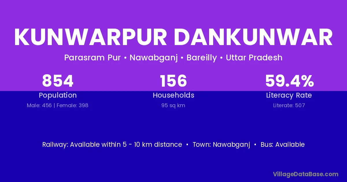 Kunwarpur Dankunwar village has a total population of 854 people, of which 456 are males and 398 are females.
