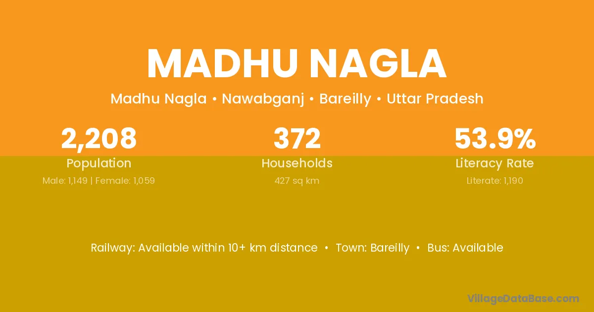 Bareilly is the nearest town to Madhu Nagla village for major economic activities
