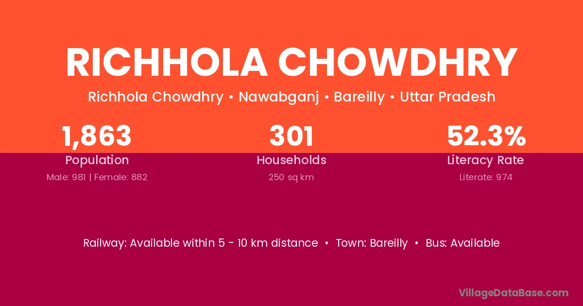 Richhola Chowdhry village has a total population of 1,863 people, of which 981 are males and 882 are females.