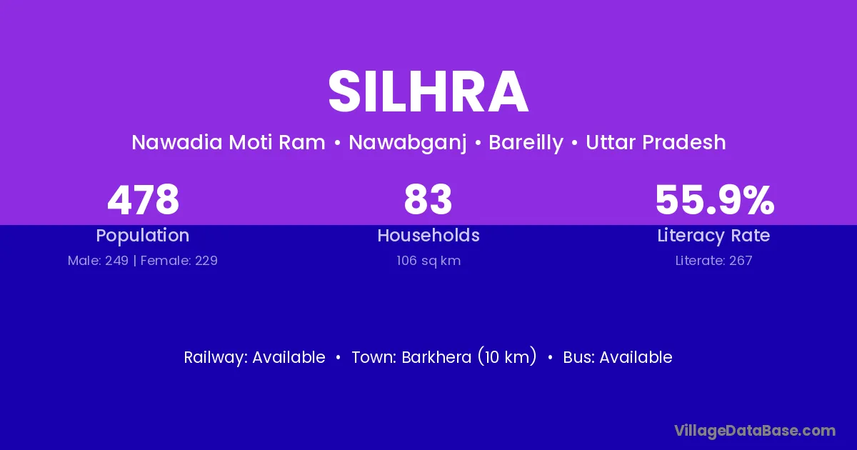 Barkhera (10 km) is the nearest town to Silhra village for major economic activities and is located approximately 10 km away.