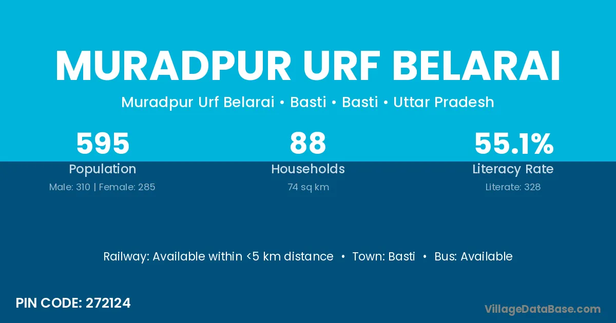 Basti is the nearest town to Muradpur Urf Belarai village for major economic activities