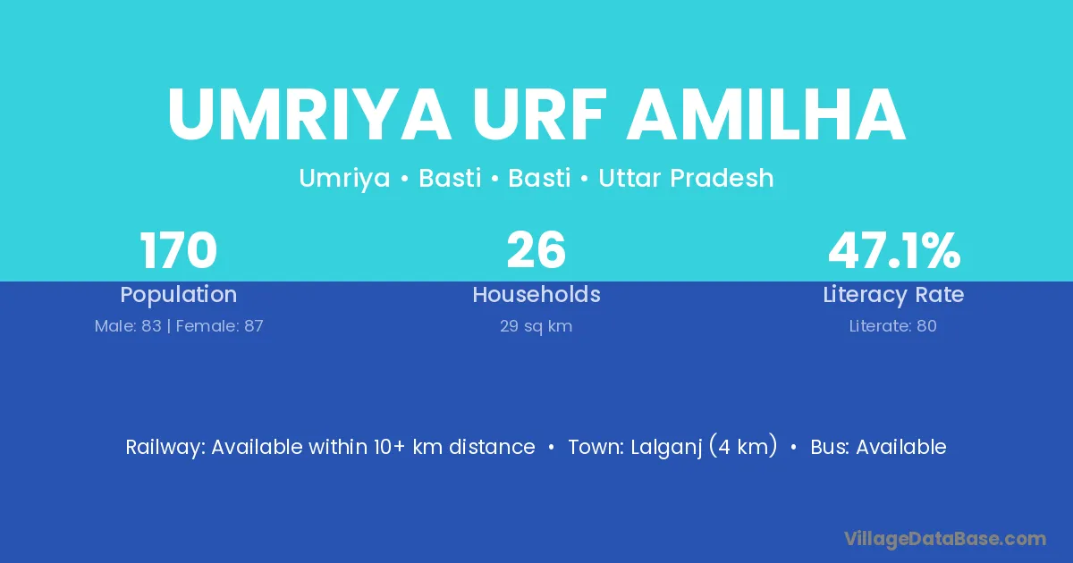 Lalganj (4 km) is the nearest town to Umriya Urf Amilha village for major economic activities and is located approximately 4 km away.
