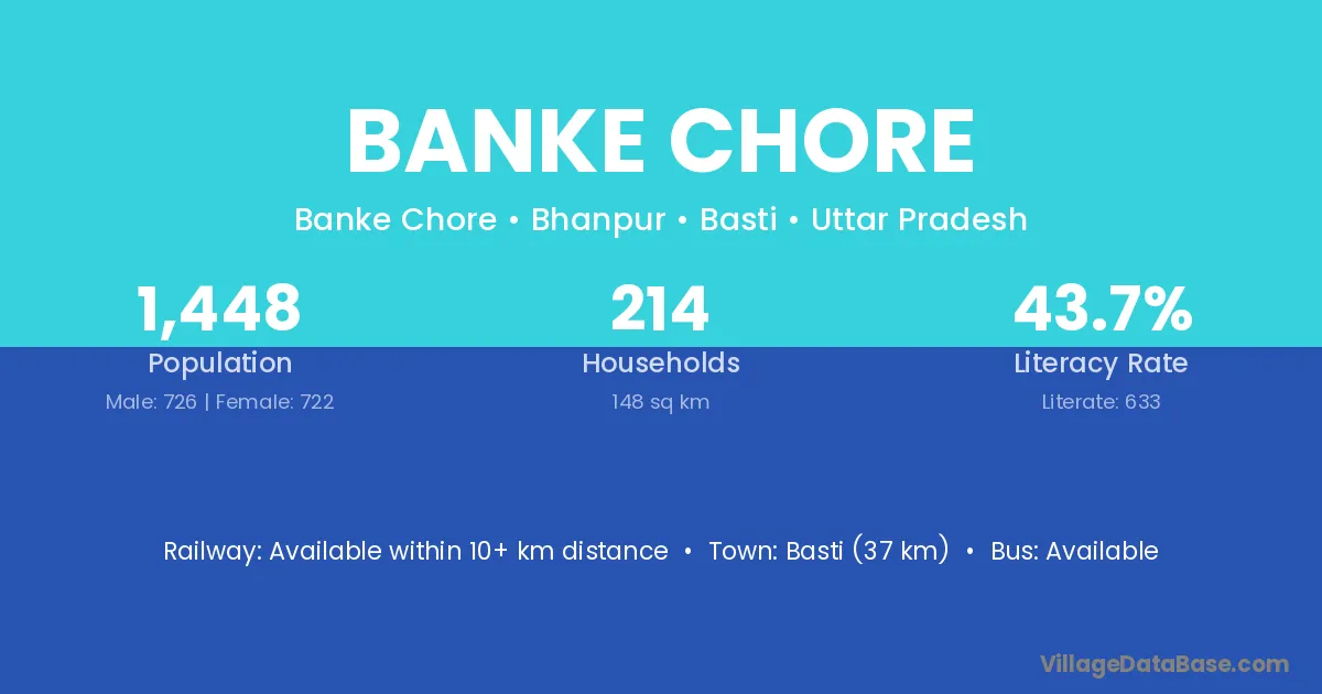 Basti (37 km) is the nearest town to Banke Chore village for major economic activities and is located approximately 37 km away.