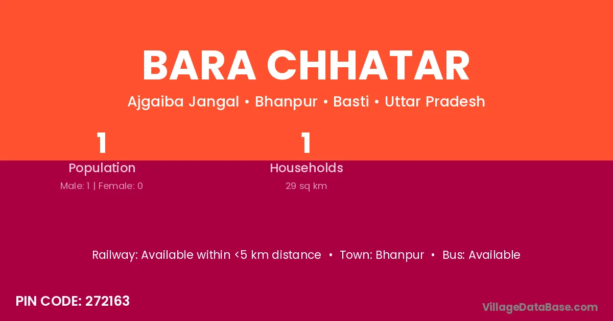 Bara Chhatar village has a total population of 1 people, of which 1 are males and 0 are females.