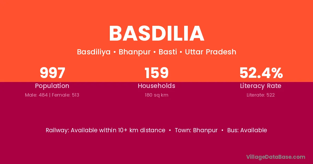 Basdilia village has a total population of 997 people, of which 484 are males and 513 are females.