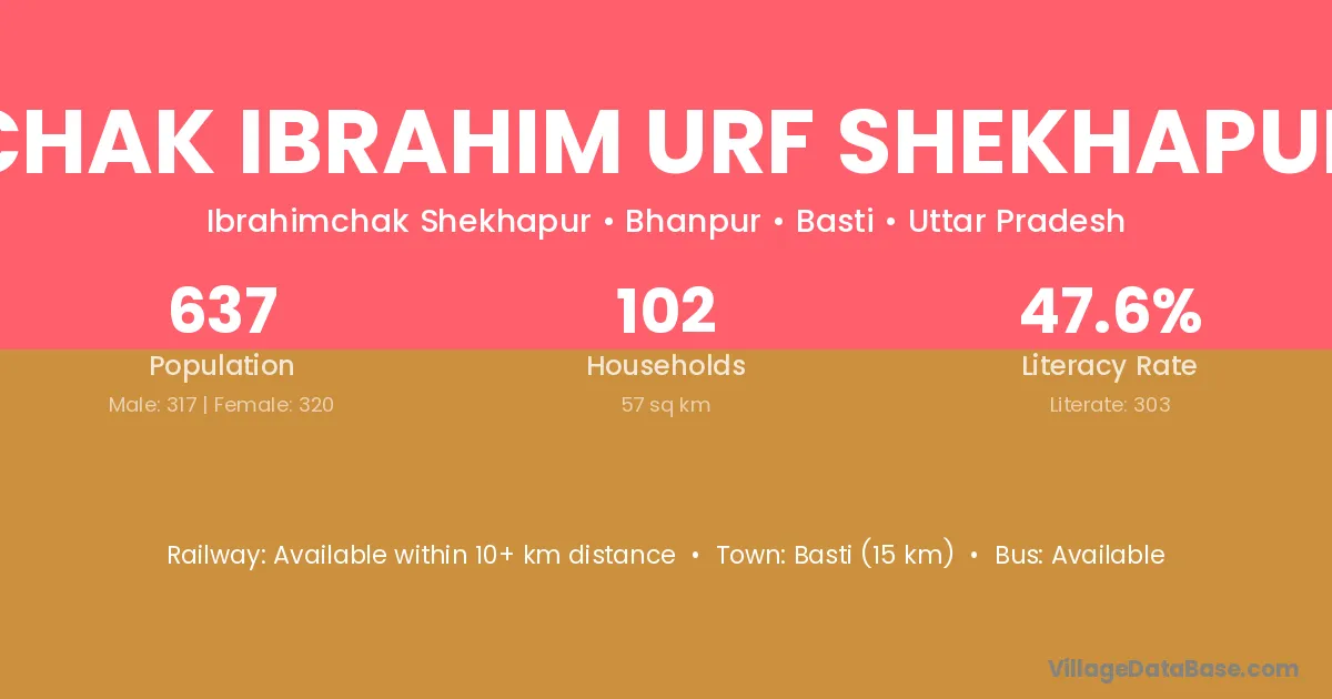 Basti (15 km) is the nearest town to Chak Ibrahim Urf Shekhapur village for major economic activities and is located approximately 15 km away.