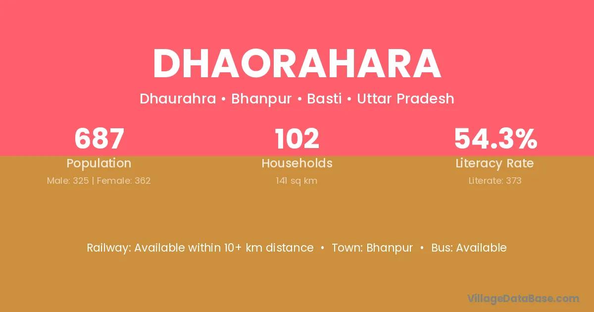 Dhaorahara village has a total population of 687 people, of which 325 are males and 362 are females.