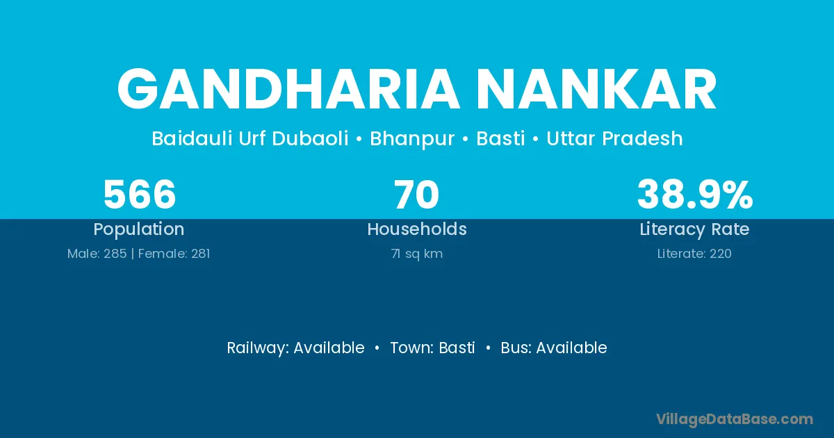 Basti is the nearest town to Gandharia Nankar village for major economic activities