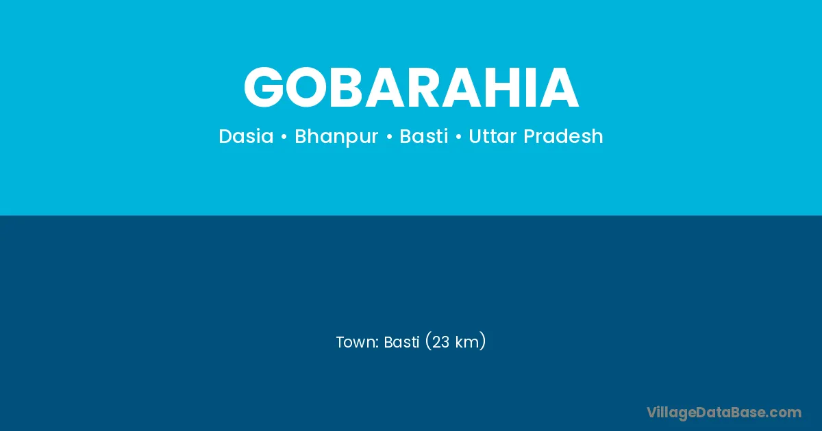 Basti (23 km) is the nearest town to Gobarahia village for major economic activities and is located approximately 23 km away.