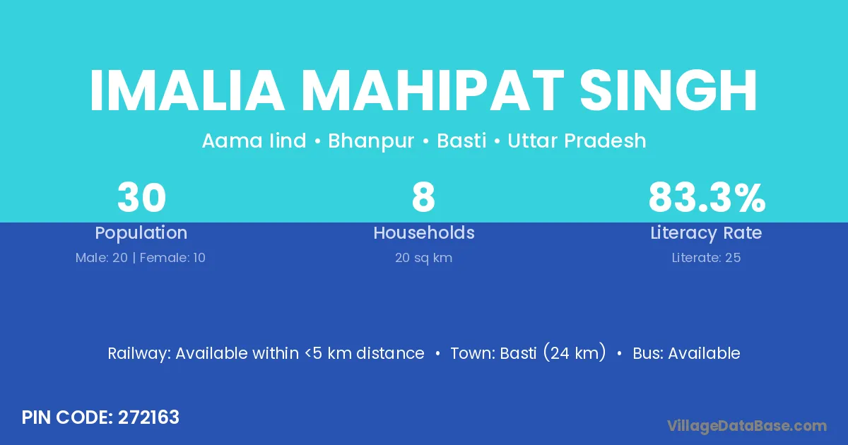 Basti (24 km) is the nearest town to Imalia Mahipat Singh village for major economic activities and is located approximately 24 km away.