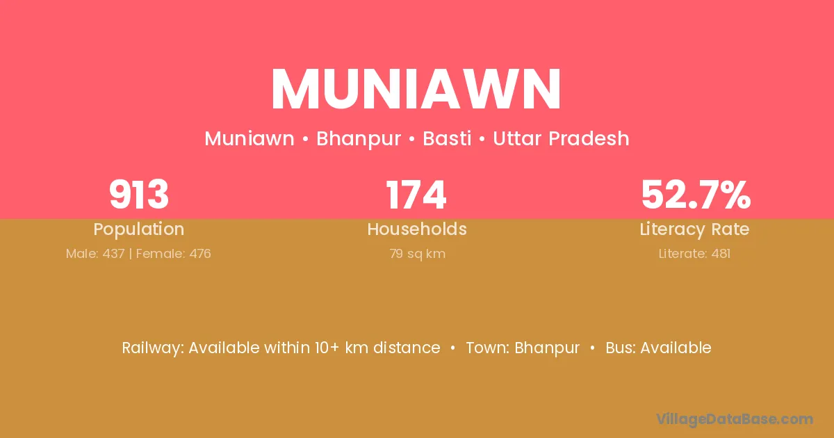 Bhanpur is the nearest town to Muniawn village for major economic activities