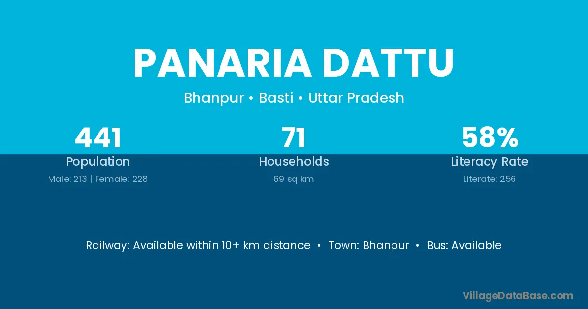 Panaria Dattu village has a total population of 441 people, of which 213 are males and 228 are females.