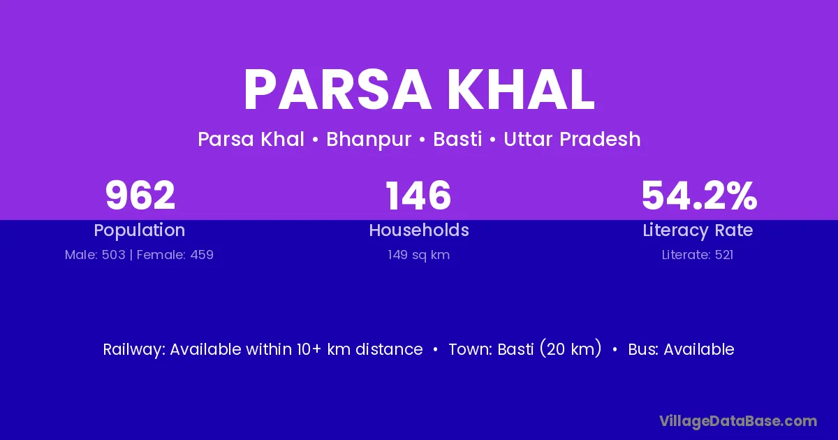 Parsa Khal village has a total population of 962 people, of which 503 are males and 459 are females.