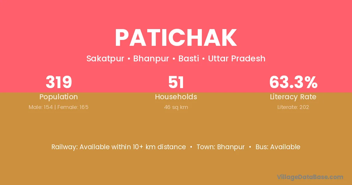 Patichak village has a total population of 319 people, of which 154 are males and 165 are females.