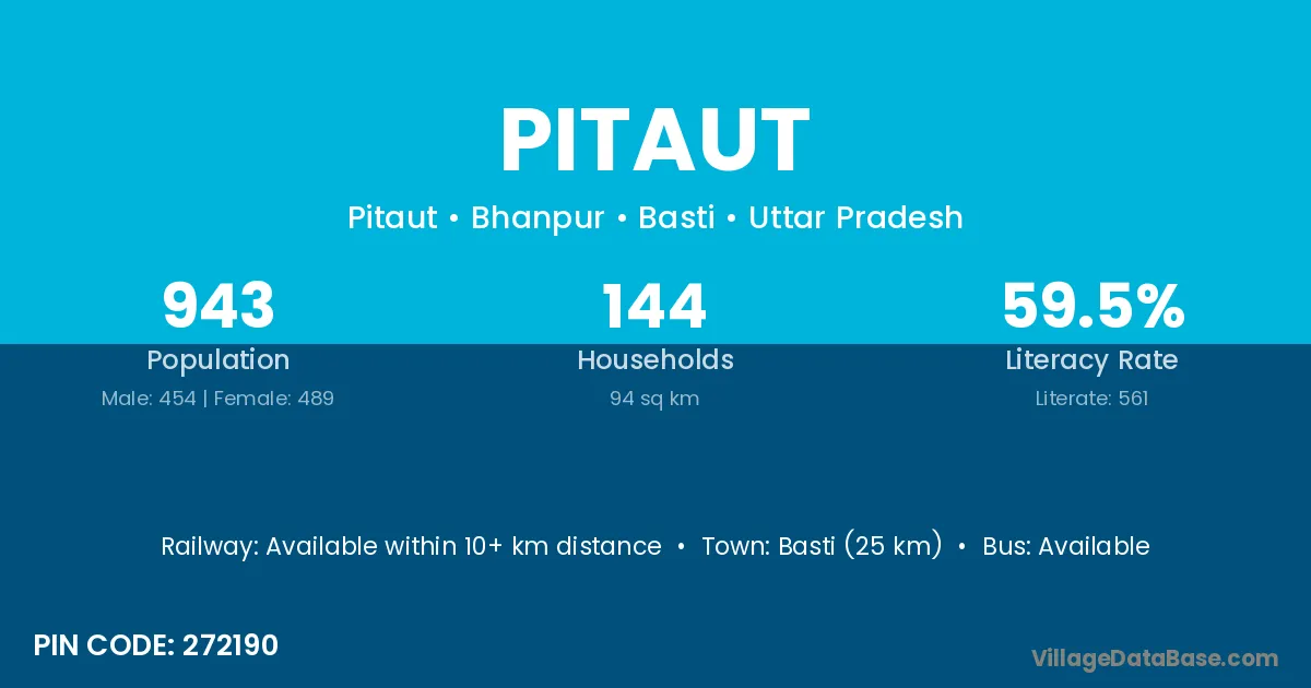 Basti (25 km) is the nearest town to Pitaut village for major economic activities and is located approximately 25 km away.