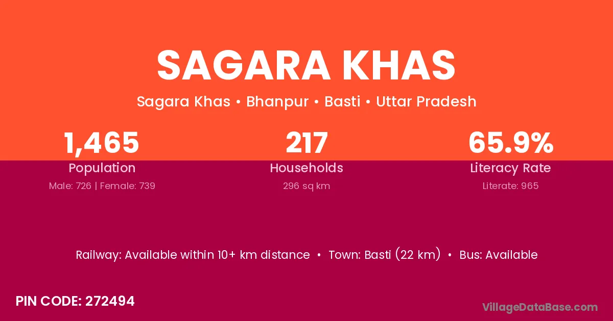 Basti (22 km) is the nearest town to Sagara Khas village for major economic activities and is located approximately 22 km away.