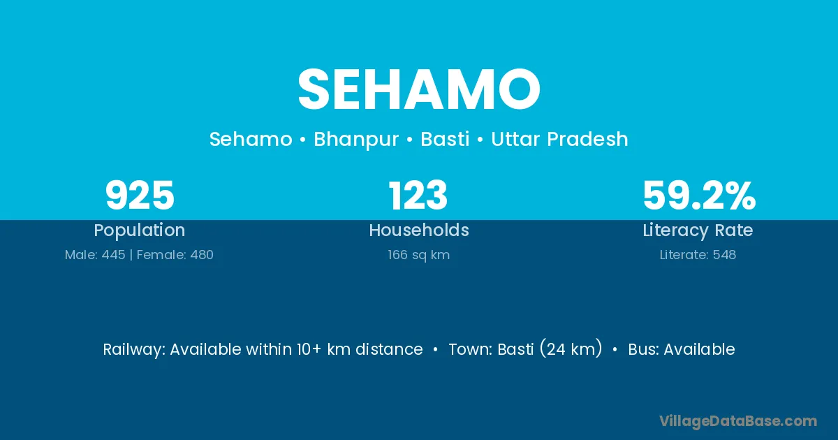 Basti (24 km) is the nearest town to Sehamo village for major economic activities and is located approximately 24 km away.