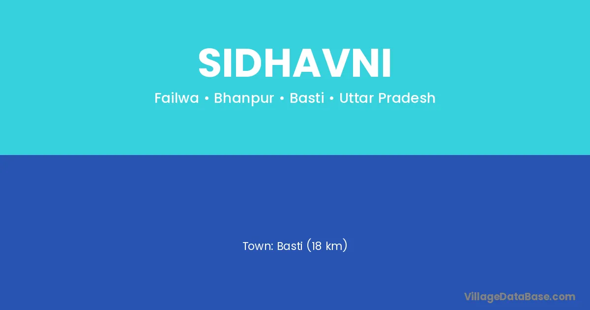 Basti (18 km) is the nearest town to Sidhavni village for major economic activities and is located approximately 18 km away.