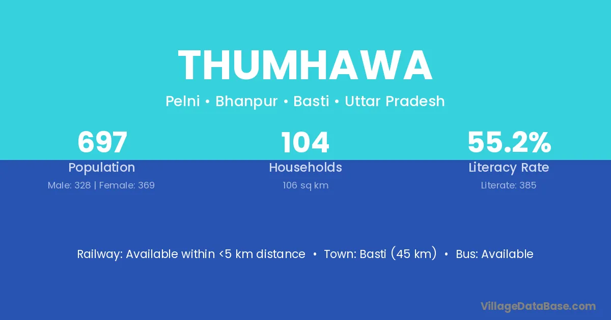 Basti (45 km) is the nearest town to Thumhawa village for major economic activities and is located approximately 45 km away.