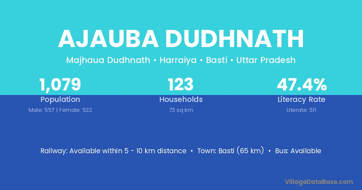 Ajauba Dudhnath village has a total population of 1,079 people, of which 557 are males and 522 are females.