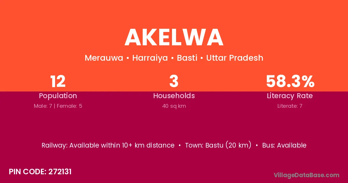 Akelwa village has a total population of 12 people, of which 7 are males and 5 are females.