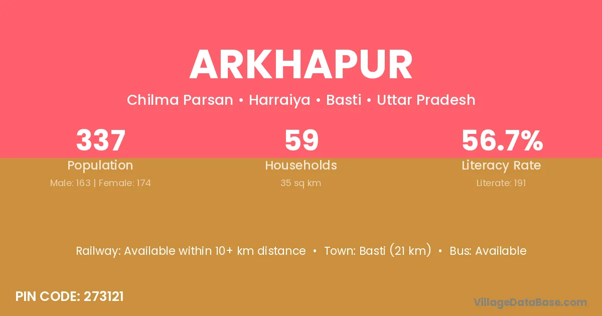 Basti (21 km) is the nearest town to Arkhapur village for major economic activities and is located approximately 21 km away.