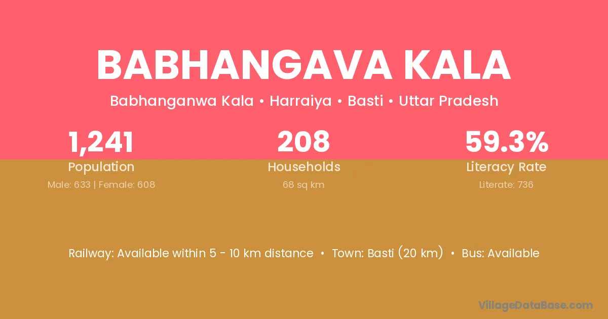 Basti (20 km) is the nearest town to Babhangava Kala village for major economic activities and is located approximately 20 km away.