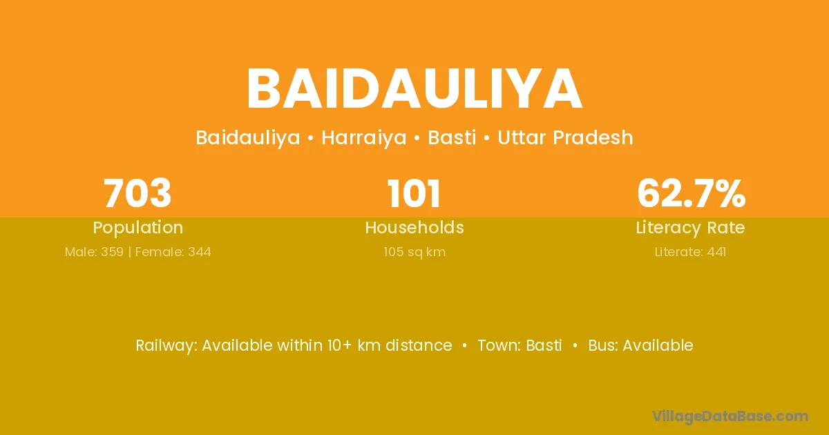 Basti is the nearest town to Baidauliya village for major economic activities