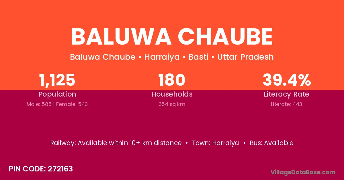 Baluwa Chaube village has a total population of 1,125 people, of which 585 are males and 540 are females.