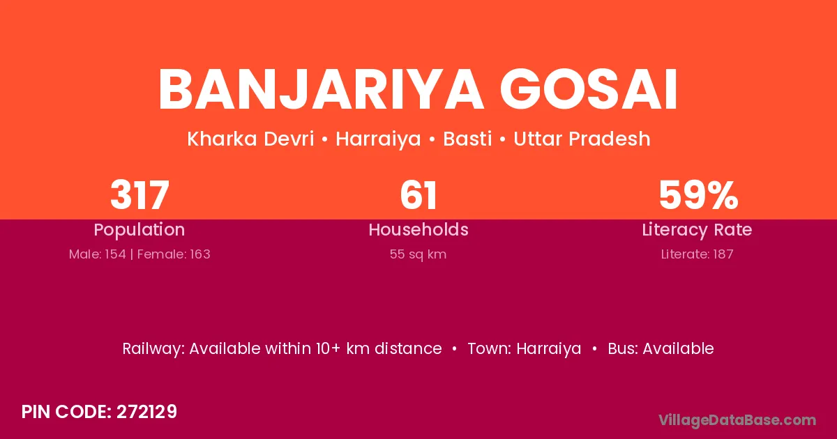 Banjariya Gosai village has a total population of 317 people, of which 154 are males and 163 are females.