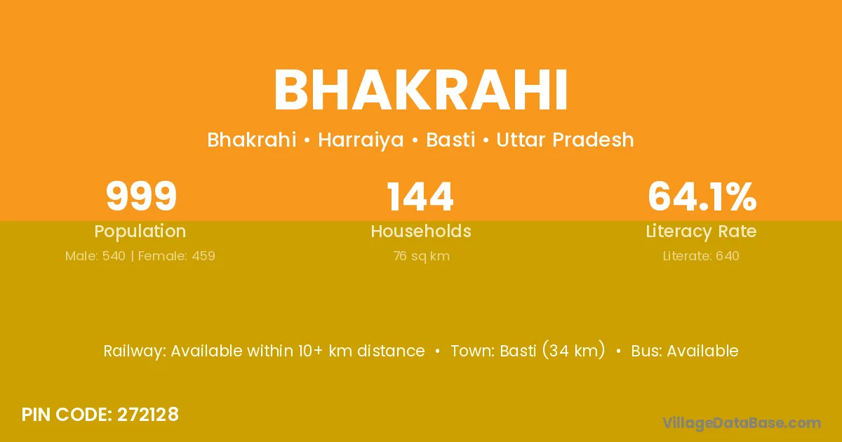 Basti (34 km) is the nearest town to Bhakrahi village for major economic activities and is located approximately 34 km away.