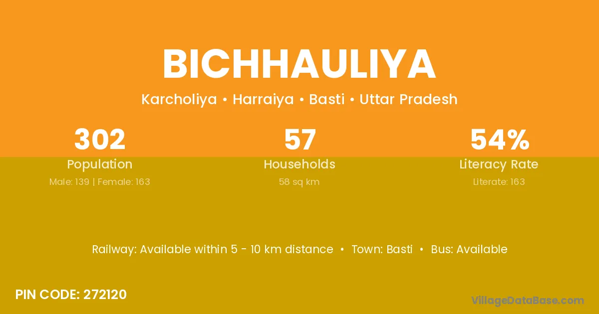 According to Census 2011 information, the village code of Bichhauliya village is 272120.