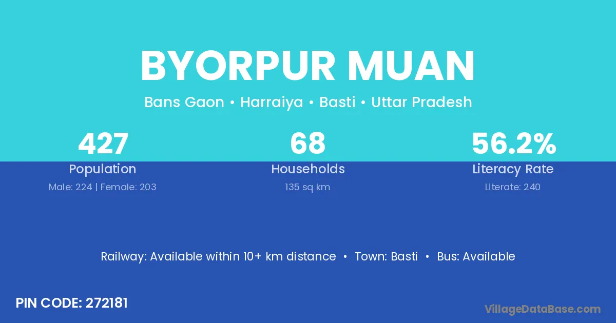 Basti is the nearest town to Byorpur Muan village for major economic activities