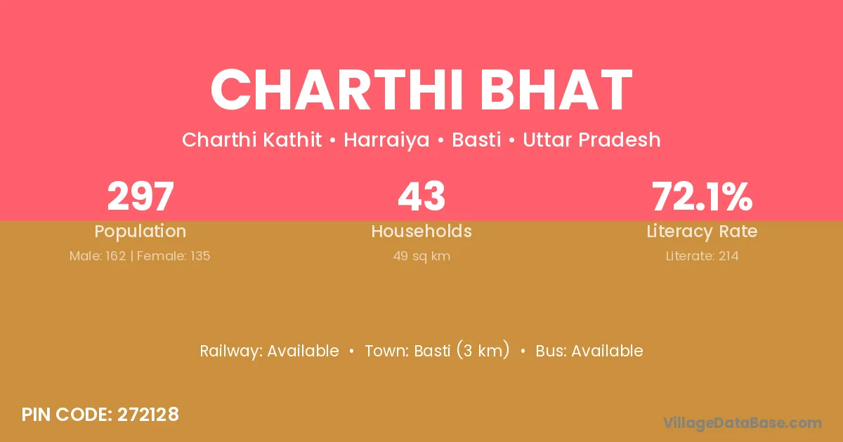 Basti (3 km) is the nearest town to Charthi Bhat village for major economic activities and is located approximately 3 km away.