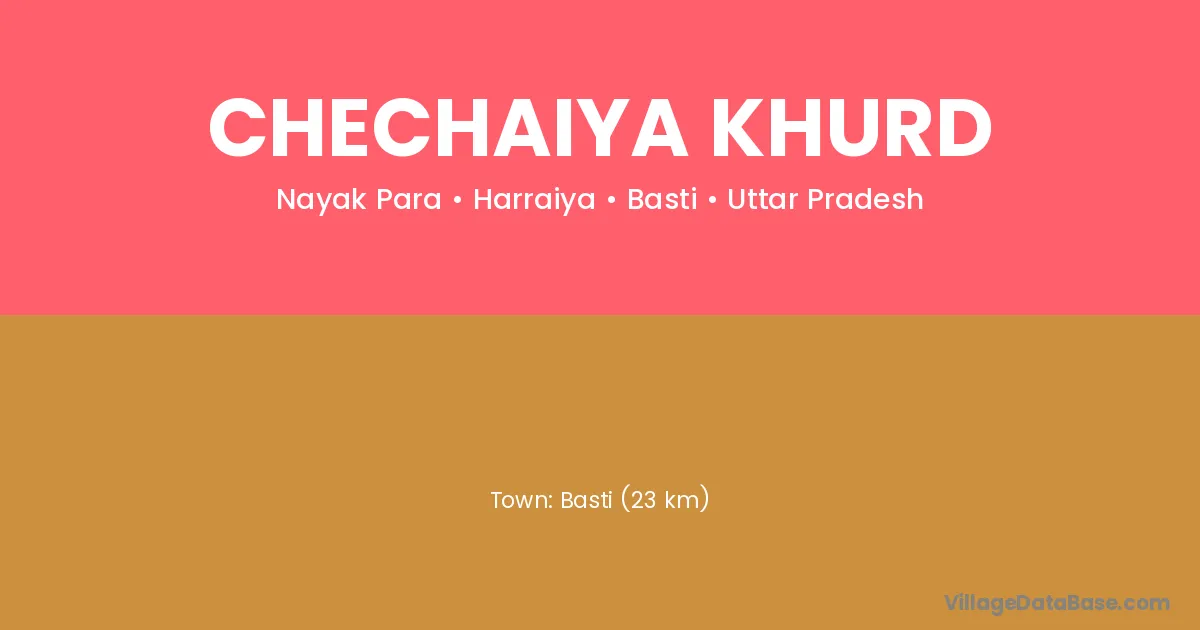 Basti (23 km) is the nearest town to Chechaiya Khurd village for major economic activities and is located approximately 23 km away.