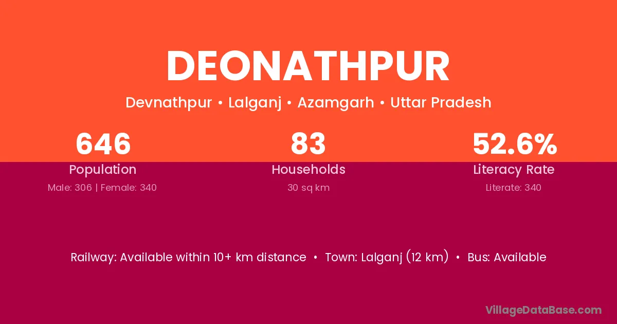 Basti (15 km) is the nearest town to Deonathpur village for major economic activities and is located approximately 15 km away.