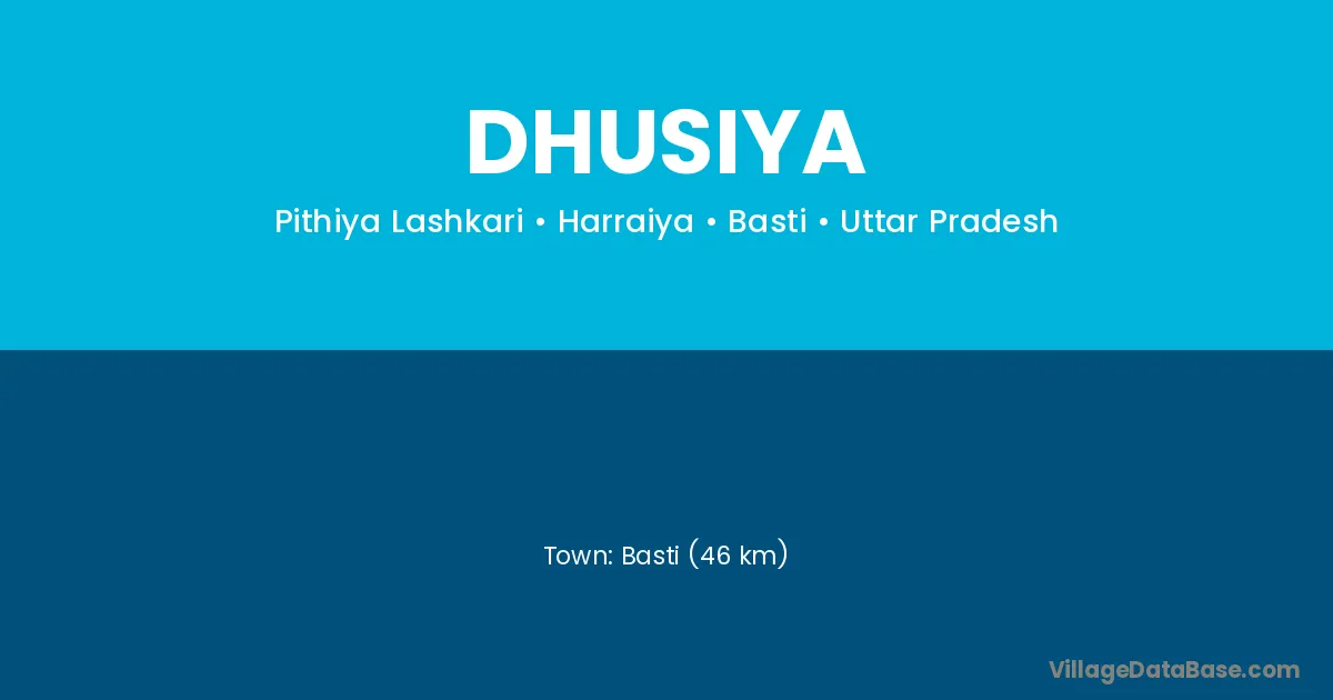 Basti (46 km) is the nearest town to Dhusiya village for major economic activities and is located approximately 46 km away.