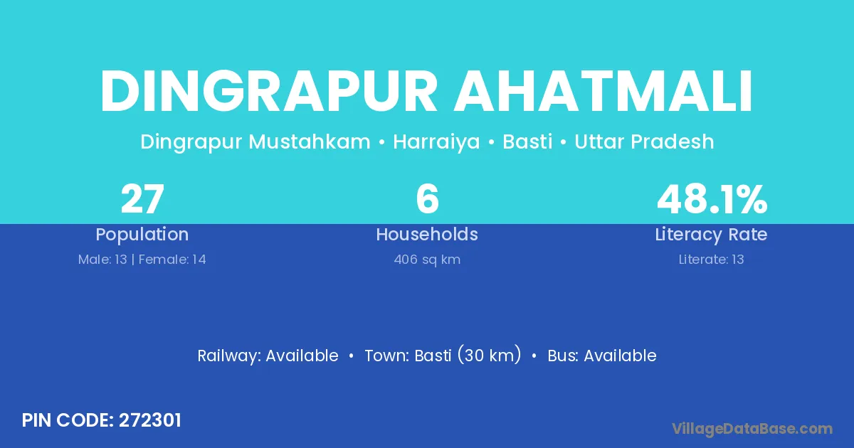Basti (30 km) is the nearest town to Dingrapur Ahatmali village for major economic activities and is located approximately 30 km away.