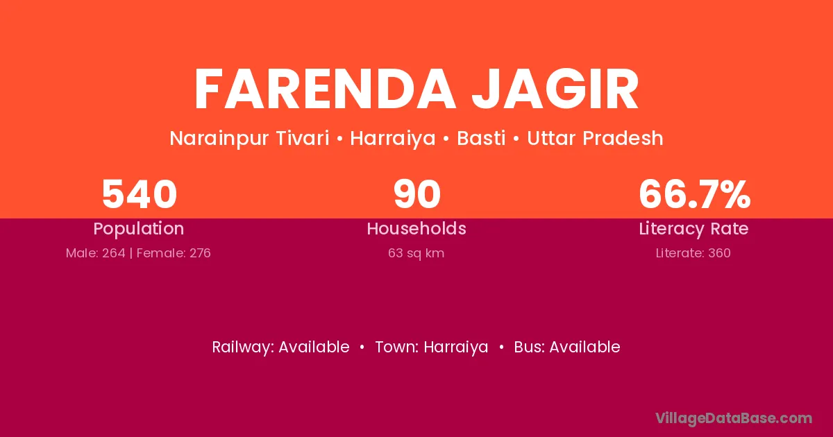 Harraiya is the nearest town to Farenda Jagir village for major economic activities