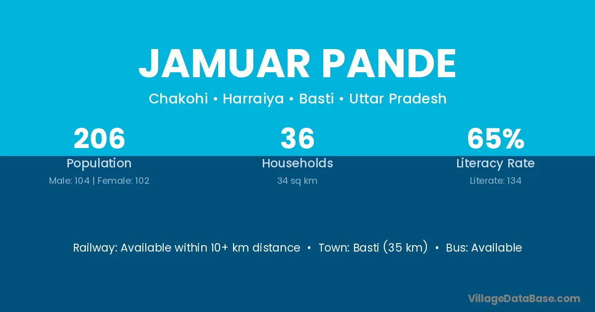 Basti (35 km) is the nearest town to Jamuar Pande village for major economic activities and is located approximately 35 km away.
