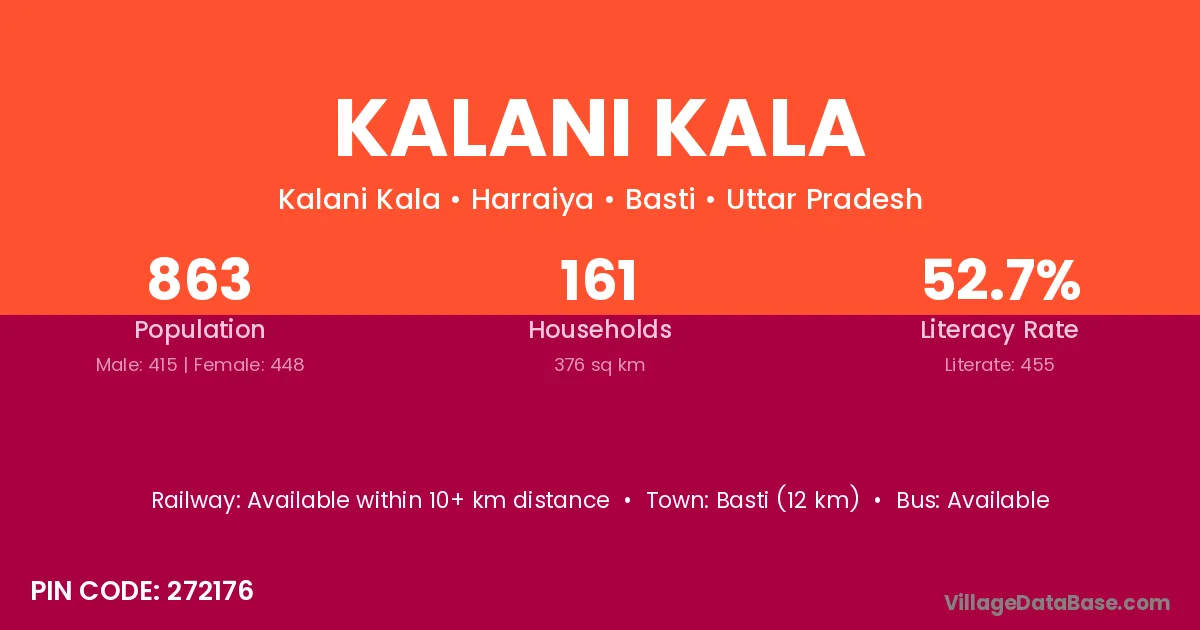 Kalani Kala village has a total population of 863 people, of which 415 are males and 448 are females.