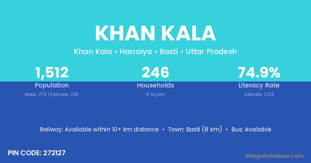 Basti (8 km) is the nearest town to Khan Kala village for major economic activities and is located approximately 8 km away.