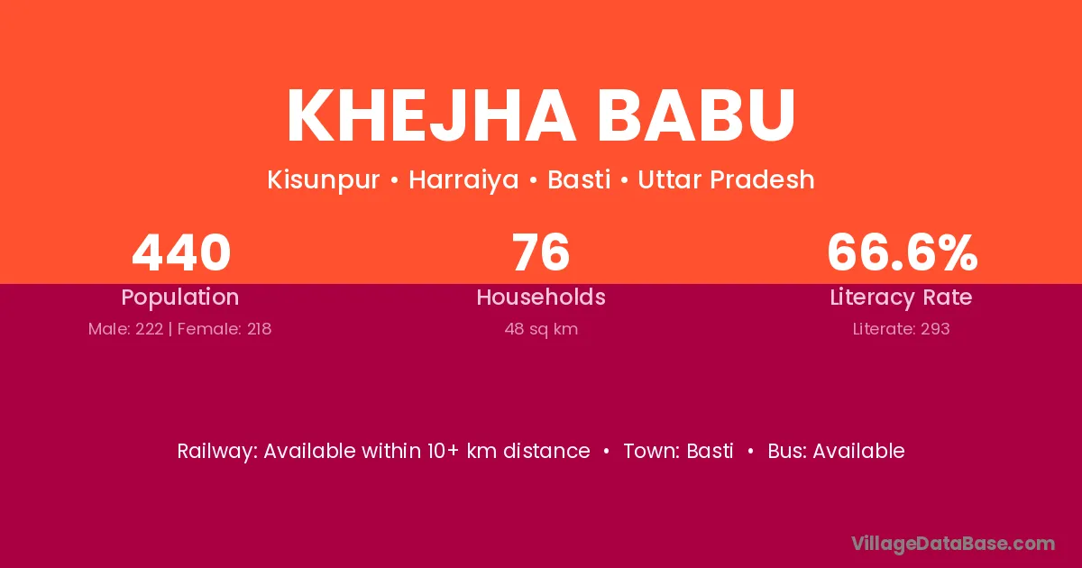 Khejha Babu village has a total population of 440 people, of which 222 are males and 218 are females.