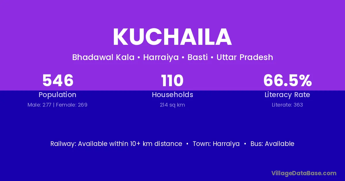 Kuchaila village has a total population of 546 people, of which 277 are males and 269 are females.