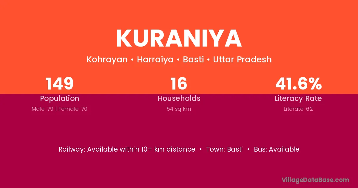 Kuraniya village has a total population of 149 people, of which 79 are males and 70 are females.